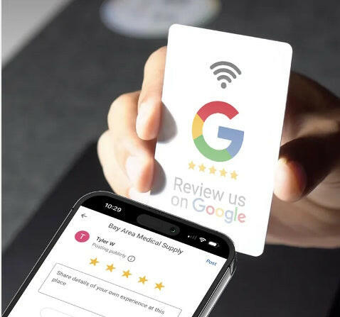 Own and operate a business and wish to secure more Google Reviews? This card allows customers to leave reviews by simply tapping their phone on the card. iPhone and Android phones are fully compatible. It's quick and easy! No more awkward conversation to get a simple review! With one scan you can have an edge up on the competition! Effortless reviews, increased traffic, enhanced SEO, and boosted sales are just a tap away!! 96% of potential customers read online reviews before buying a product or service. Many of these customers are willing to pay more for products with good reviews.