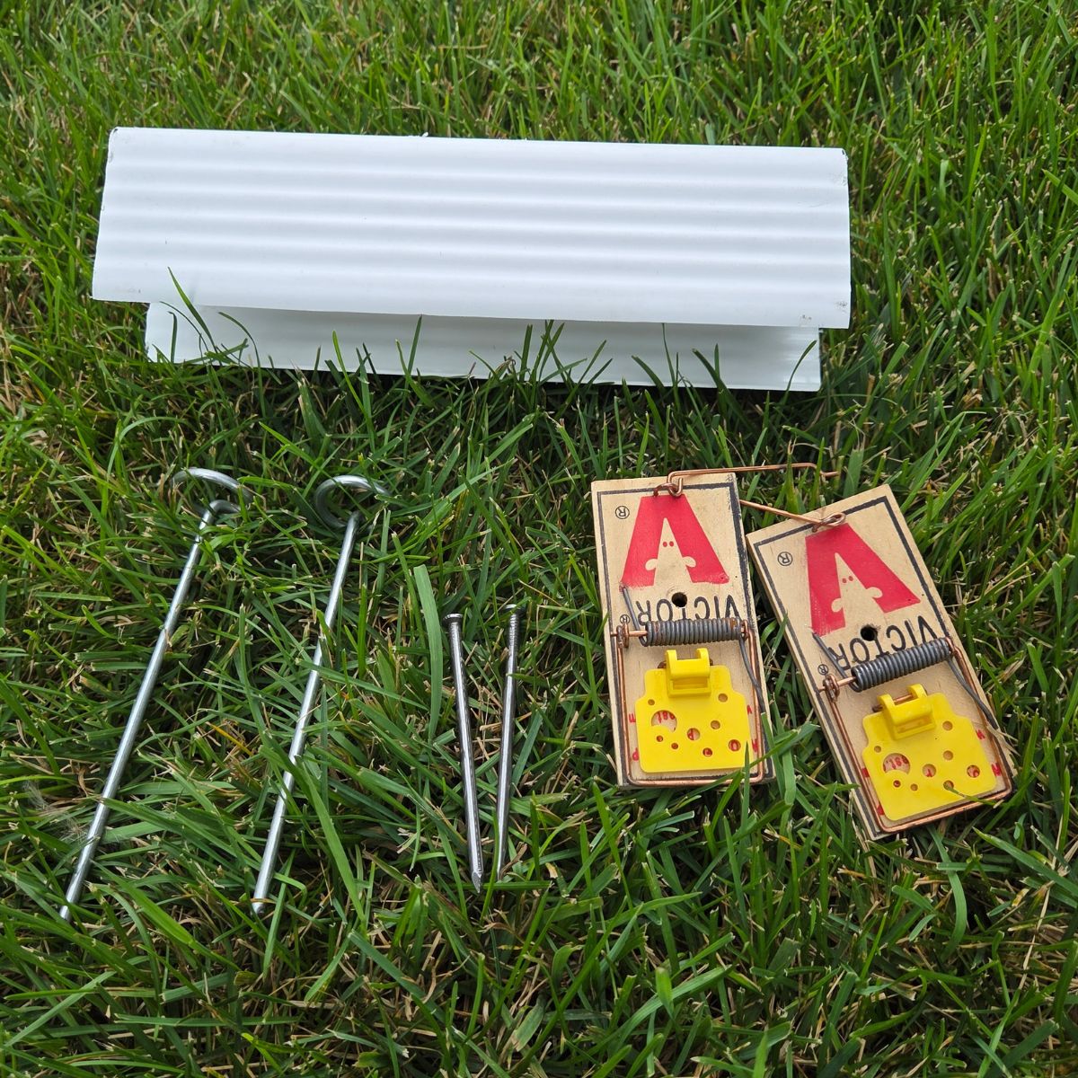 Take control of yard and garden damage with our easy-to-use Vole Trapping Kit. Designed for efficiency and reliability, this kit includes a trap cover, traps, and stakes for the cover and traps. For heavier infestations consider purchasing multiple kits.
